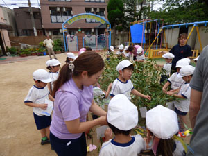 朝から曇り空でしたが、無事に七夕の会を行う事が出来ました。最初に七夕の由来を紙芝居で お話しました。次に星形・ハート形や自由に形を考えて色を描いた個性的な短冊を、一人ひとり 笹に飾り付けをしてから願い事を唱えました。織姫様と彦星様が無事に会えたら良いですね。