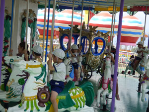 7月24日と25日で奈良にお泊り保育に行きました。1日目はバスで出発。途中ケーブルカーに 乗って生駒山上遊園地に行きました。遊園地は涼しく、乗り物に乗って楽しみました。 その後観光ホテルに移動してお風呂入り、夕食を食べた後はお楽しみ会を楽しみました。 みんなぐっすり眠りました。