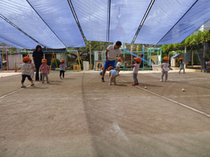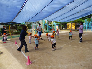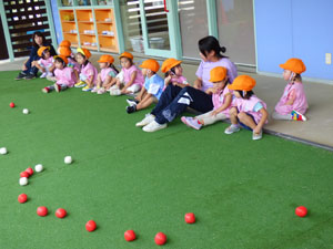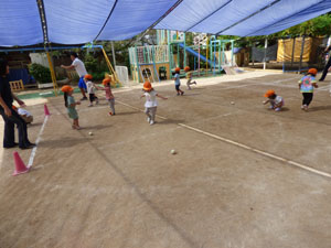 未就園児クラス、たんぽぽ組の様子です。久々の秋晴れの優しい日差しの中で、かけっこや玉入れ、 玉を投げたり蹴ったりしてみました。担任の先生や体操の先生のお話を上手に聞いて、 ルールを学びながら楽しみました。