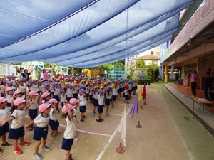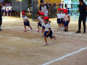 日差しの強くない日は、園庭や近くのグランドをお借りして、運動会の練習をしています。
