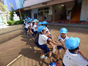 ドッジボールを楽しみました。綱引きでは年長さんと先生が勝負しましたが、子ども達の圧勝
