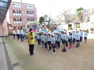 一週間のはじまりに、全園児で朝のおはじまりをしました。この日は七五三の由来や千歳飴に
