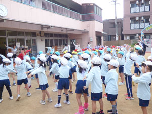 ついてお話を聞き、体操をしました。園庭の草花も秋の装いを感じられるようになりました。