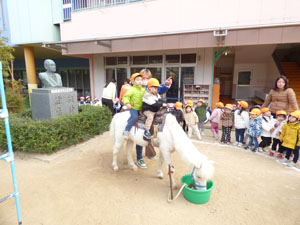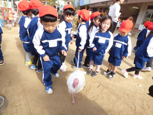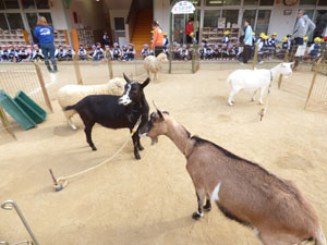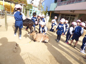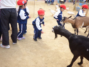 今年も幼稚園の園庭に動物たちが遊びに来てくれました。最初は遠慮気味にしていた子どもたち