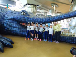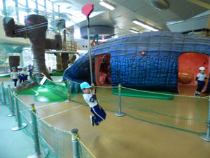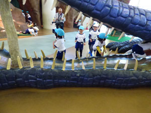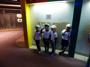 年長さんはお別れ遠足で幼児向けの室内あそび場に行きました。昔の街や科学のゲームなどで 遊んでから、アスレチックのような遊びで楽しく遊びました。お弁当を食べてから帰りました。 みんなとても楽しみました。