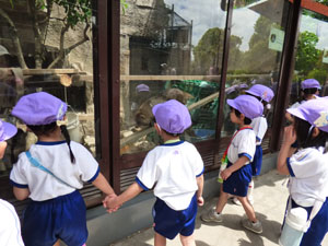 年中さんは、遠足で動物園に行って来ました。普段見られない動物を間近で見ることができて、 喜んでいました。フラミンゴやカバ、ライオン、オオカミ、レッサーパンダ、ツルなどたくさんの 動物がいました。