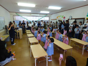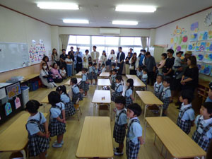 土曜参観がありました。年少さんは朝のおはじまりをしてから、クレヨンあそびをしました。 年中さんは線のワークでギザギザの雷を描きました。年長さんはホールにて「みんなで楽しむ 音楽会」をしました。ハンドベルとトーンチャイムの美しい音色の後に、お歌を3曲歌いました。 おうちの方に、普段通りの元気な姿を見ていただけたと思います。 (保護者の方々からのアンケートは、保護者の皆様からの声のコーナーに掲載していますのでご覧ください。)