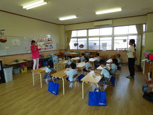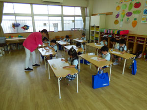 落ち着いて椅子に座って、先生のお話をしっかり聞いていました。集中力がついてきたようです。