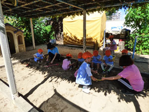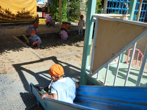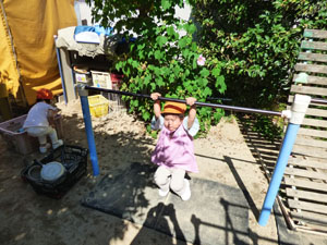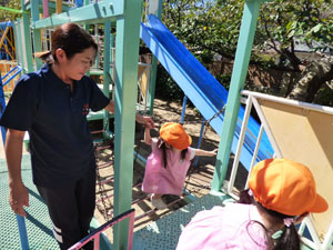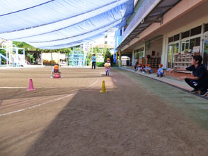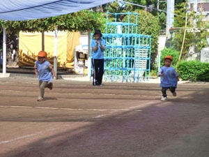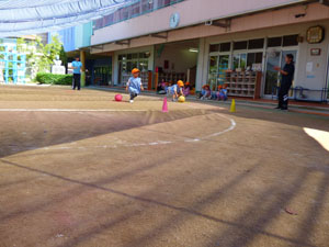 運動会の未就園児かけっこに向けて、たんぽぽ組(未就園児クラス)のみんなでかけっこを しました。走っているお友達を「がんばれー!」と応援していました。かけっこの後は、 たんぽぽ組さんが大好きなお砂場やすべり台で遊びました♪