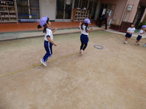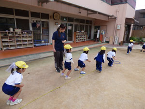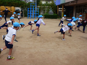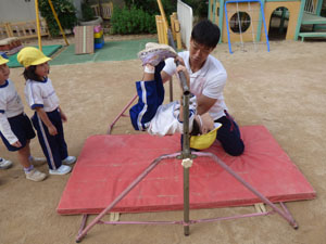 毎週火曜日は専任の講師による正課の体操があります。走ったり、鉄棒やマット運動等、