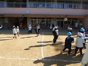 今日の年長さんの外遊びの様子です。後半はドッジボールをしました。汗をいっぱいかいている